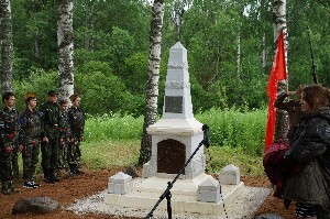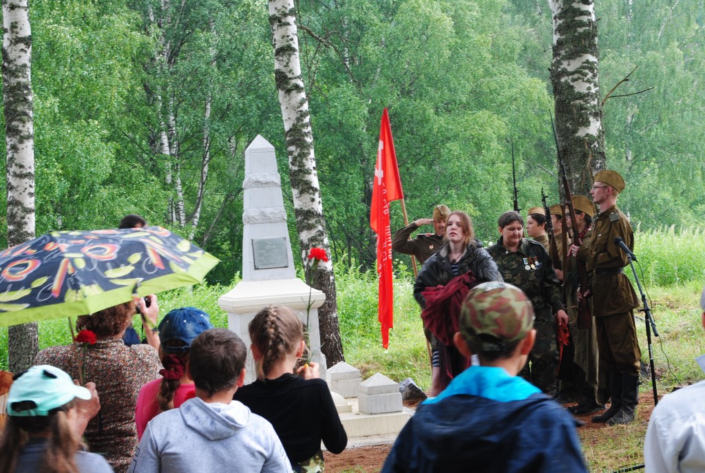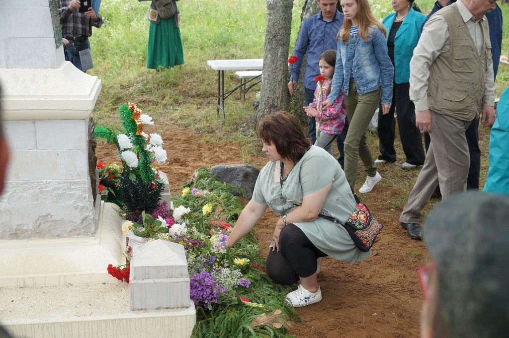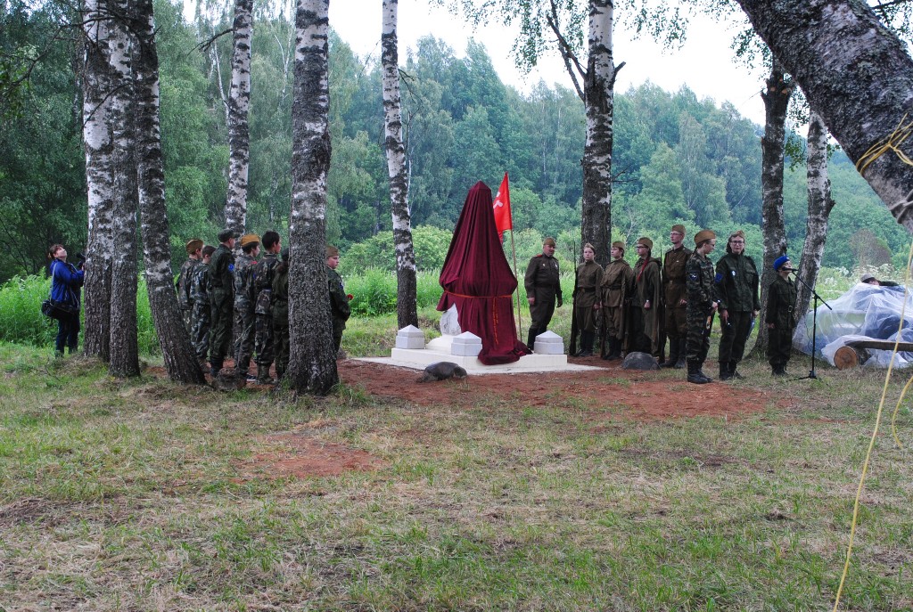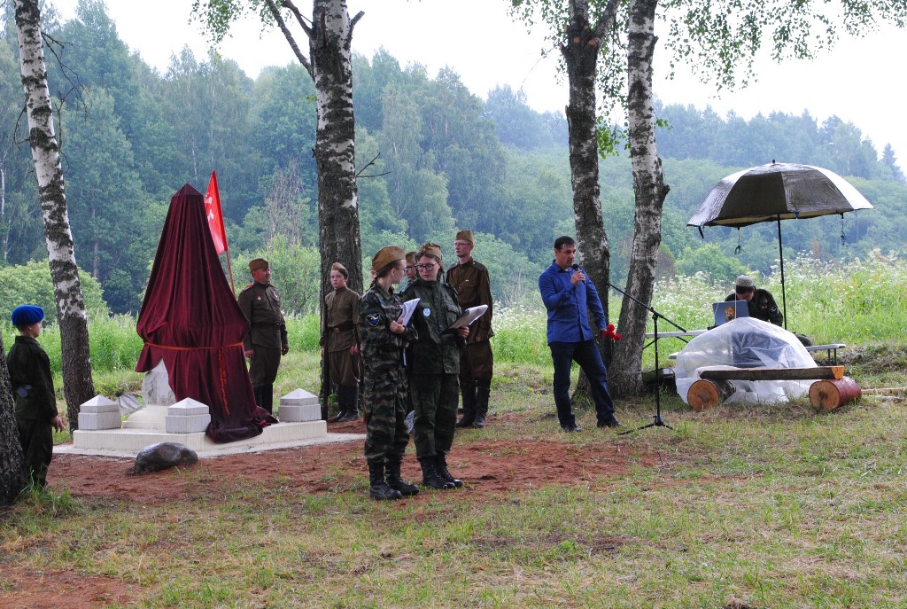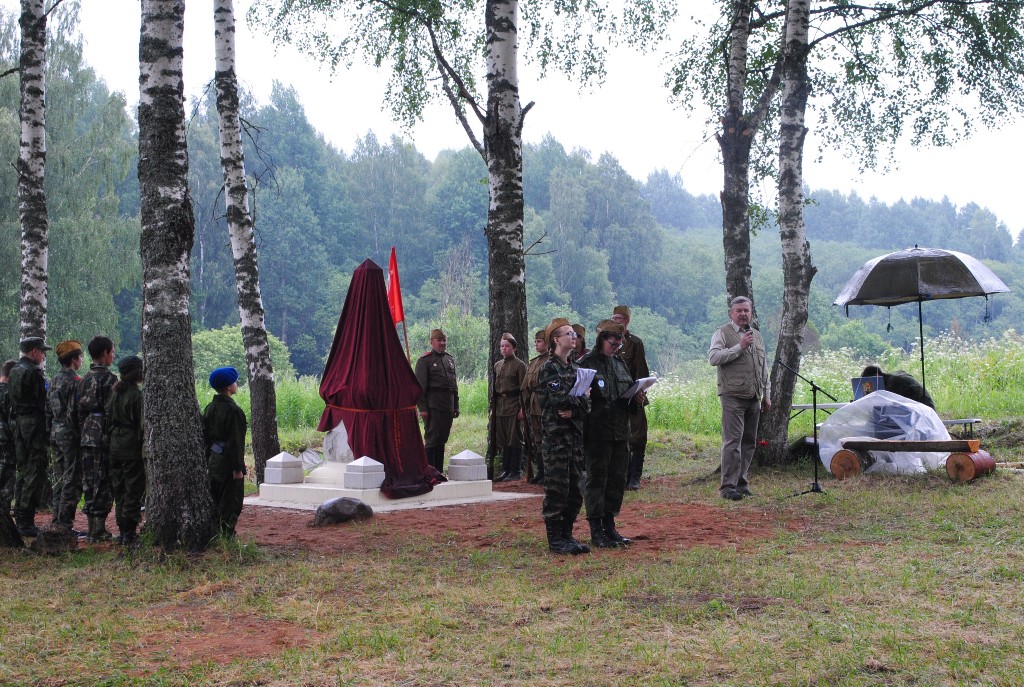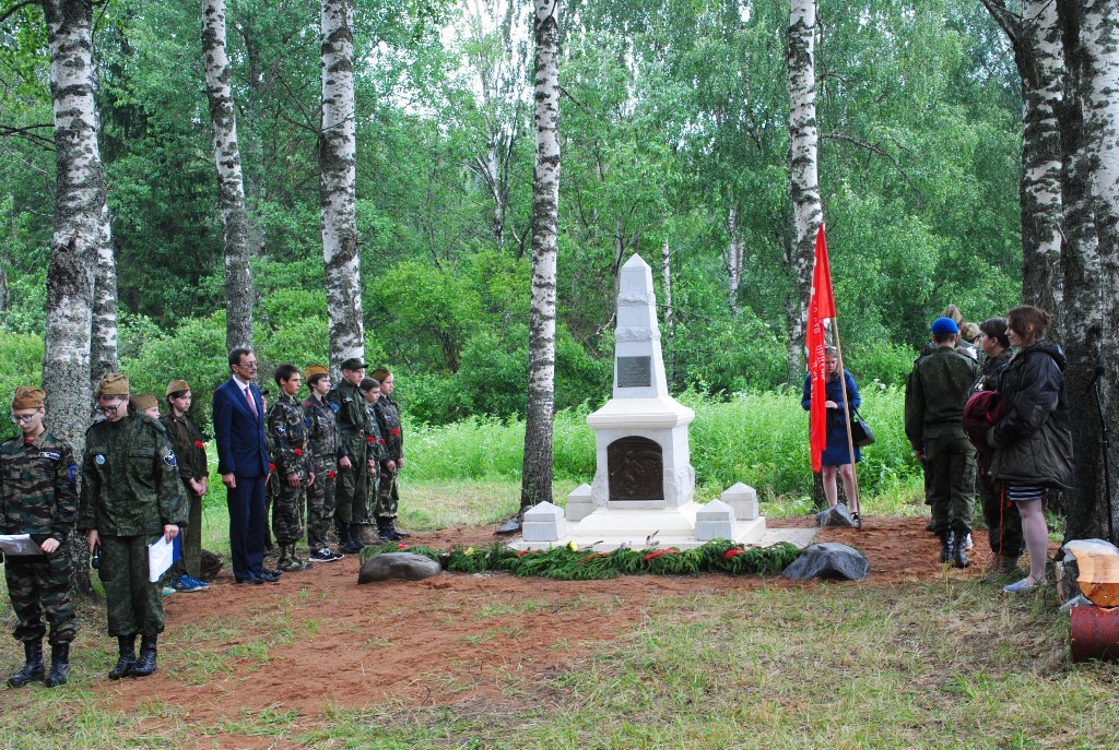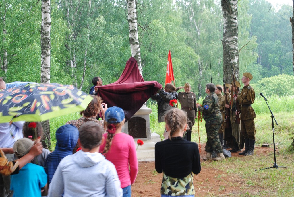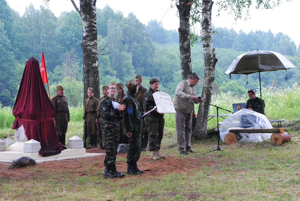 Открытие памятного знака на месте совершения подвига самопожертвования 22 февраля 1942 года красноармейцем 158 стрелковой дивизии Абрамом Исааковичем Левиным